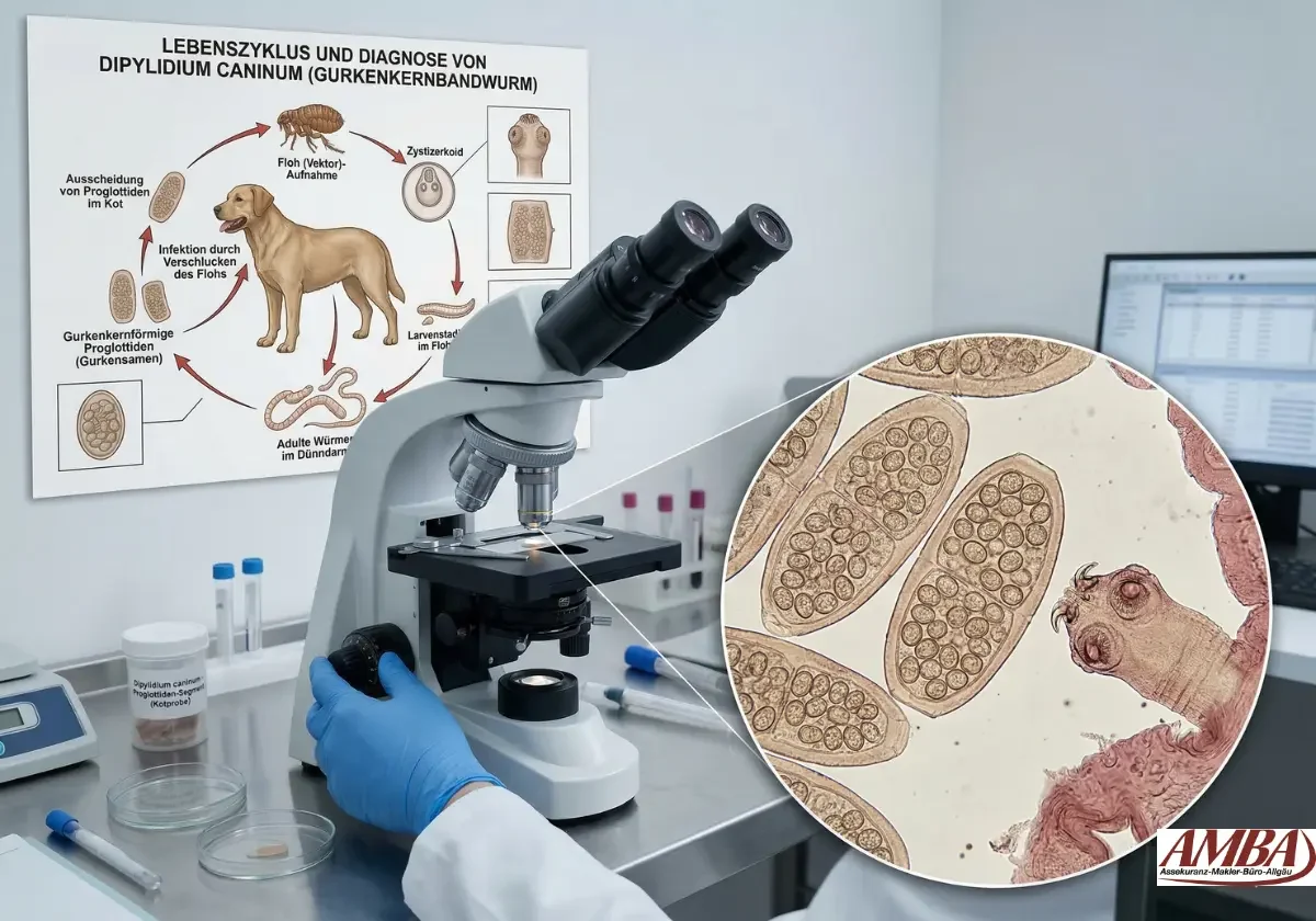 Finanziell wirkt Bandwurmbefall zunächst kleiner als viele andere Parasitosen, kann im Verlauf aber unnötig teuer werden, wenn die Ursache nicht sauber mitgedacht wird. Ein einmaliger positiver oder negativer Kotbefund beantwortet nicht jede Frage, weil Flotation bei Bandwürmern eine begrenzte Trefferquote hat und bei bestimmten Arten zusätzliche Differenzierung nötig sein kann. Schon die allgemeine Untersuchung mit Beratung kostet nach GOT 23,62 Euro im einfachen Satz. Kommen wiederholte Kotproben, weiterführende Labordiagnostik oder zusätzliche Abklärung bei Juckreiz, Gewichtsverlust oder Verdauungsproblemen dazu, wächst die Rechnung schnell. Für die Absicherung zählt deshalb nicht erst die Diagnose, sondern der Zeitpunkt davor. Sobald der erste dokumentierte Verdacht, die erste Kotdiagnostik oder eine bereits bekannte Parasitenproblematik in der Akte steht, wird passender Versicherungsschutz oft deutlich schwieriger.